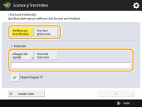 Dacă doriţi să verificaţi conţinutul documentului trimis, selectaţi <Ataşare Imagine TX> pentru a ataşa prima pagină a documentului ca fişier PDF la un e-mail de notificare.
