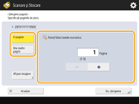 2 | Specificați paginile pe care doriți să le ștergeți. ![]() Pentru a șterge o singură pagină, apăsați <O pagină> și introduceți numărul paginii corespunzătoare. Pentru a șterge mai multe pagini simultan, apăsați <Mai multe pagini> <Prima pagină> sau <Ultima pagină> și introduceți numerele paginilor corespunzătoare. |