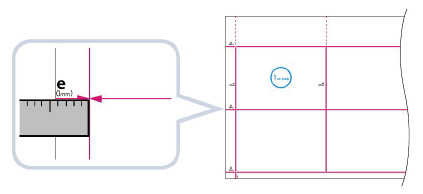 Reveniți la ecranul <Reglare poziţie imagine> verificați și măsurați lungimea marcajului „e” pe fața și spatele paginii de testare imprimate.Valoare implicită: „e” = 20,0 mm