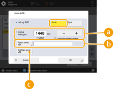 <Verificare server NTP>Puteţi verifica starea de comunicare între un server înregistrat şi SNTP. Când o conexiune este făcută corect, se afişează „OK”. Cu toate acestea, numai starea comunicării este confirmată şi nu se efectuează ajustarea timpului.