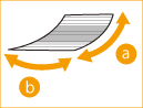 Cum se măsoară ondularea După cum se arată în diagramele de mai jos, așezați hârtia pe o suprafață plană, cu ondulațiile orientate în sus și măsurați gradul de ondulare la ambele colțuri ale marginii frontale a hârtiei. Dacă ondulația este perpendiculară pe direcția de alimentare Puncte de măsurare a ondulației | | Vedere din lateral a hârtiei orientată în direcția de alimentare | | | | Direcţie de alimentare | | *Măsurați gradul de ondulare (în mm) |