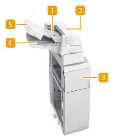 Nu se poate imprima pe hârtia încărcată în „Document Insertion Unit-R”. În cazul în care comutatorul automat pentru unitatea de inserare este setat la „Pornit”, atunci când tava selectată a unității de inserare rămâne fără hârtie în timpul lucrării de imprimare, aparatul selectează automat o altă tavă a unității de inserare și continuă imprimarea. |