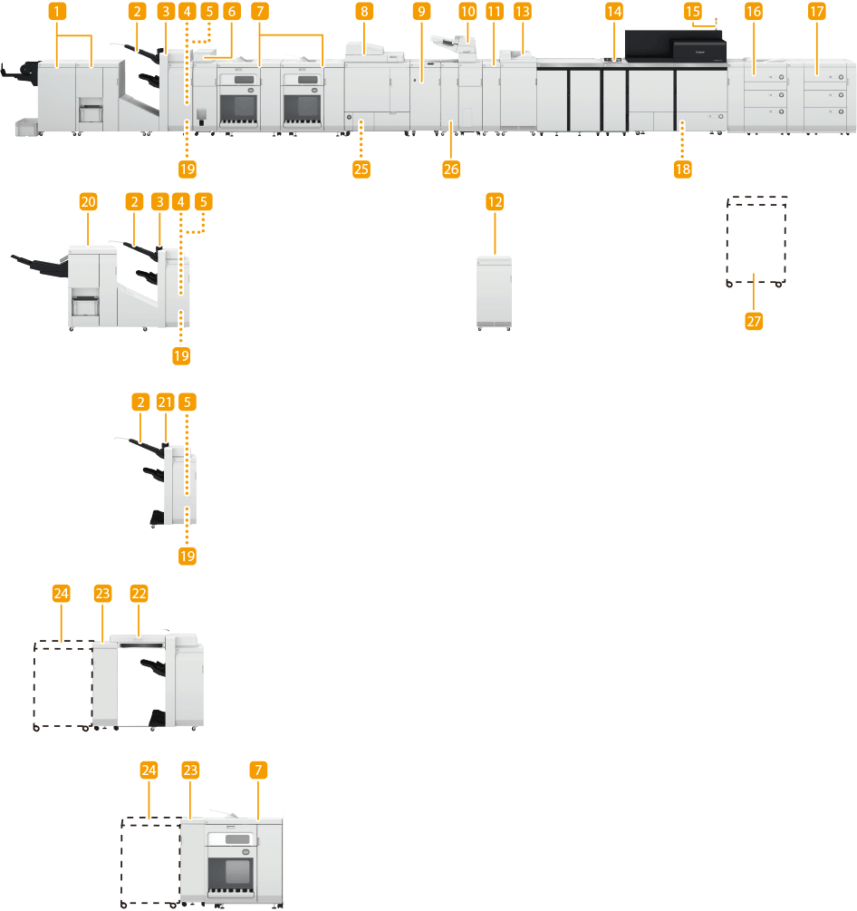 Pentru informaţii legate de combinațiile de opţiuni ce pot fi instalate pe aparat, contactaţi dealerul sau reprezentantul de service. Produsele opționale disponibile pot diferi în funcție de țara sau de regiunea dvs. Este posibil ca unele setări să nu se afişeze, în funcţie de configuraţia echipamentelor opţionale instalate pe aparat. |