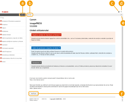 Faceţi clic pentru a afişa informaţiile despre cum să vizualizaţi Ghidul utilizatorului, cum să realizaţi o căutare şi alte informaţii.