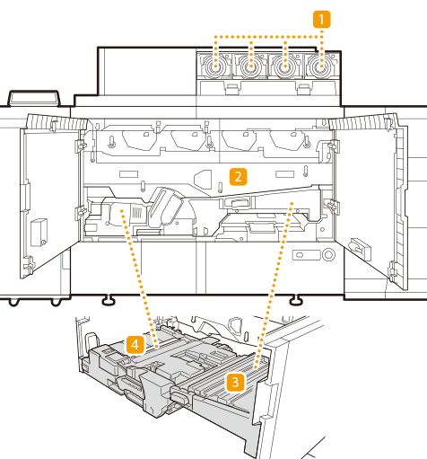 Livrează hârtia preluată din magazia de hârtie către centrul de fixare prin intermediul poziţiei de transfer a tonerului. De asemenea, Unitatea de alimentare livrează hârtia de la centrul de fixare când este setat modul Faţa 2 a paginii cu 2-Feţe. Trageţi afară această unitate pentru degajarea unui blocaj de hârtie din interiorul ei.