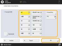 Selectaţi formatul hârtiei încărcate în magazia de hârtie.