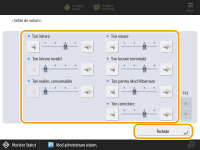 <Ton intrare> | Sunetul produs de fiecare dată când se apasă o tastă de la panoul de control sau un buton de la panoul tactil |