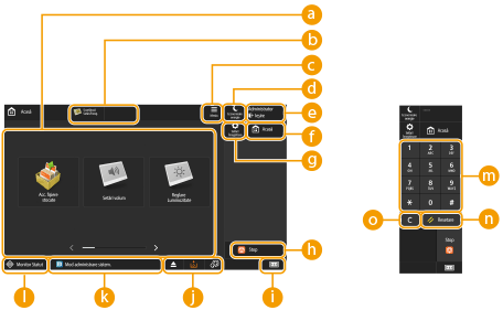 În funcţie de modul şi starea de utilizare a aparatului, următoarele trei tipuri de butoane apar de la stânga la dreapta. Rețineți că butoanele afișate diferă în funcţie de modelul aparatului și de componentele opţionale instalate.