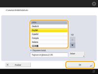 apare în partea de jos a afişajului panoului tactil. Puteţi comuta limba afişată curent cu o altă limbă apăsând butonul <Comutare limbă/tastatură>, selectând limba dorită din listă şi apăsând <OK>.