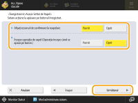 Dacă <Începe operaţia de rapel (Operaţia începe când se apasă pe buton.)> s-a setat pe <Oprit>, ecranul de setare se afişează atunci când apăsaţi <Da>. Aceasta vă permite să modificaţi setările înainte de a apăsa <Începe imprimarea> pentru a începe.