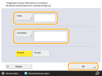 Apăsaţi <Nume> sau <Comentariu> pentru introducere. Este comod să introduceţi un nume de setare în <Nume> şi o notă în <Comentariu>.