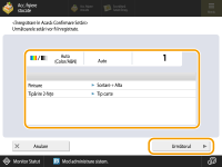 Dacă <Începe operaţia de rapel (Operaţia începe când se apasă pe buton.)> s-a setat pe <Oprit>, se afişează ecranul de setare. Aceasta vă permite să modificaţi setările înainte de a apăsa <Începe imprimarea> pentru a începe.