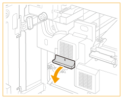 Trageţi pârghia ghidajului de evacuare a hârtiei pentru a deschide capacul.