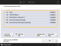 (Contor/Informaţii despre aparat).![]() (Elementele afișate pe ecran pot diferi în funcție de modelul și opțiunile dvs.) |