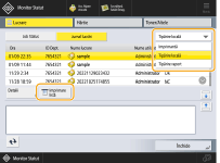 (Monitor de stare), se afişează ecranul monitorului de stare, care vă permite să verificaţi istoricul de utilizare pentru fiecare funcţie, cum ar fi copierea, imprimarea, trimiterea de e-mail, trimiterea/primirea de I-faxuri etc. Din acest ecran, puteţi de asemenea să imprimaţi istoricul de utilizare pentru fiecare funcţie.![]() |