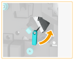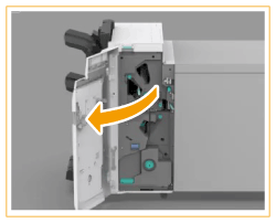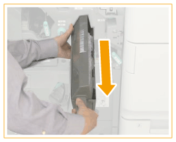 Urmați procedura descrisă în această secțiune pentru a elimina deșeurile de perforare din dispozitivul „Puncher Unit-BS”/„Puncher Unit-BT”/„Puncher Unit-BU” instalat în dispozitivul opțional „Staple Finisher-AF”/„Booklet Finisher-AF”.