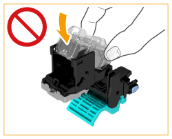 Asigurați-vă că introduceți mai întâi partea din față a cutiei de capse. Nu încercați să introduceți mai întâi partea din spate a cutiei de capse, așa cum se arată în ilustrația de mai jos.