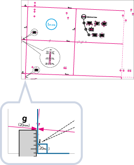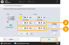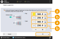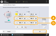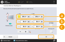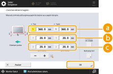 Pentru a restabili valoarea acumulată, apăsați <Restabilire setări iniţiale> Dacă pe hârtia produsă se imprimă marcaje de înregistrare, înseamnă că suprafaţa tipărită este egală cu suprafaţa din interiorul marcajelor de înregistrare. |