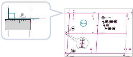 Dacă imprimați pagina de testare utilizând hârtie cu latura verticală orientată spre direcția de alimentare cu o lungime de cel puțin 304 mm, marcajul de înregistrare de pe marginea din stânga nu va fi imprimat corect. În acest caz, măsurați lungimea marcajului <i>. Dacă lungimea măsurată este mai mică de 20 mm, introduceți valoarea diferenței cu <+>, dacă lungimea măsurată este mai mare de 20 mm, introduceți valoarea diferenței cu <->.