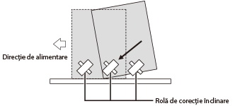 Rola de corecţie a înclinării se află în unitatea de alimentare a motorului de imprimare. Ea reglează poziţia înregistrată a hârtiei alimentate prin împingerea acesteia pe diagonală la peretele din interiorul unităţii de alimentare. Dacă setarea nivelului de corecţie a înclinării este incorectă, imaginea tipărită va fi oblică.