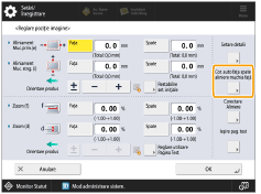 În funcţie de tipul hârtiei, căldura generată de unitatea de fixare poate determina dilatarea sau contractarea uşoară a hârtiei. Astfel, şi imaginile se pot mări sau micşora în consecinţă. Această funcţie permite setarea raportului de zoom al imaginii pentru fiecare hârtie sau mărirea imaginii micşorate conform raportului de zoom al imaginii de pe a doua faţă a hârtiei. Puteţi regla raportul de zoom al imaginii prin introducerea raportului de mărire/micşorare sau prin introducerea valorii măsurate manual a hârtiei pentru pagina de testare.