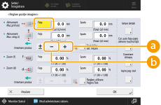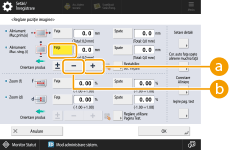 Utilizați <-> și <+> în <Faţa> în <Aliniament Muc.prim.(e)> pentru a introduce valoarea.