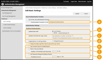 Configuraţi setările de mai jos atunci când utilizaţi autentificarea de la tastatură.