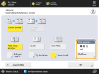 Apăsaţi <Modificare> din <Format hârtie> şi selectaţi dimensiunea hârtiei pentru copertă şi sursa de hârtie.