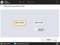 Vă recomandăm să utilizaţi o singură magazie de hârtie pentru lucrările cu reglare automată. Când efectuaţi procedura pentru reglarea automată a poziţiei imaginii cu hârtie de tip personalizat, setările de reglare sunt salvate după ce lucrarea este imprimată. |