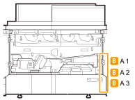 Rotiţi butonul de reglaj (A2) în direcţia săgeţii şi scoateţi hârtia blocată.