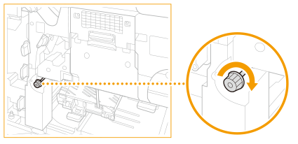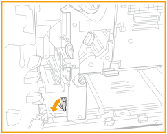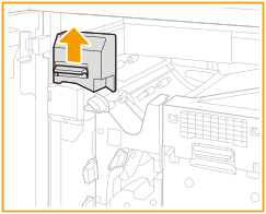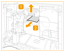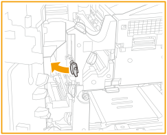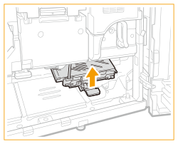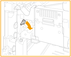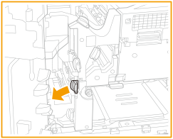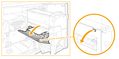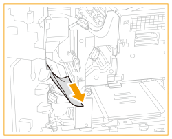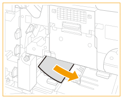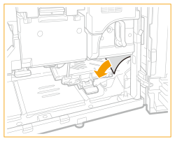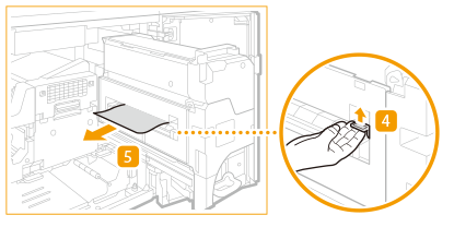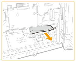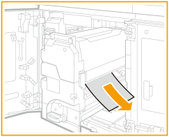 ![]() | Dacă hârtia este blocată la intrarea unităţii de fixare, trageţi-o uşor în direcţia săgeţii. ![]() |