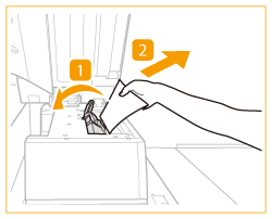 În timp ce apăsați levierul mânerului, deschideți unitatea de inserare a documentelor.
