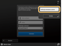 Când vă conectați la un Microsoft Entra ID prin autentificare cu tastatura, conexiunea la Microsoft Entra ID poate fi acum confirmată pe ecranul de conectare al panoului de control. Puteți să verificați conexiunea de la []  <Verificaţi conectarea la server> în colțul din dreapta sus al ecranului de conectare.