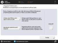 <Atribuiţi valori RGB pt. culori ieşite în Grafic de culori>, <Reproduceţi culorile de pe alt dispozitiv>, <Listă profil>