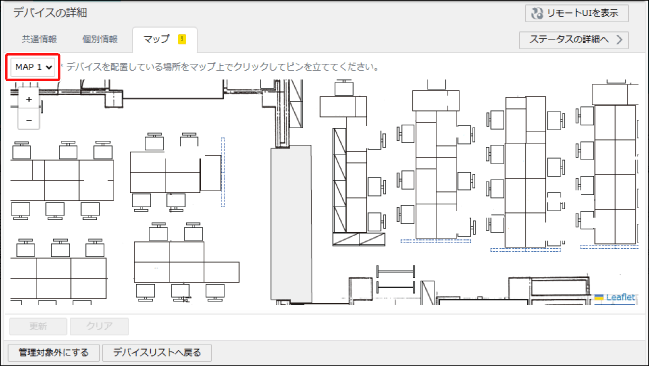 | ドロップダウンリストで、表示するデバイスマップを選択します。 |