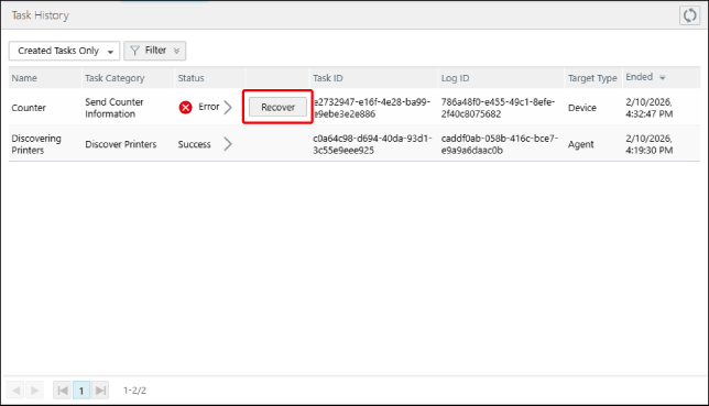 Devices and Agents that failed task execution are the target of a recovery task. |