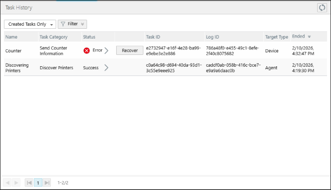 The execution results of the following built-in tasks are not displayed in the list. Monitor Printers Retrieve Printer Information Retrieve Counter Information |