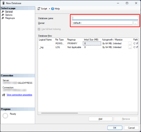 Start SQL Server Management Studio and connect to the database engine (SQLEXPRESS).