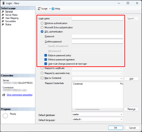 Select [SQL authentication].