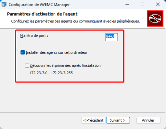Lors de l'installation de l'Agent sur le même ordinateur que le Gestionnaire, cochez la case [Découvrir les imprimantes après l'installation] pour découvrir des imprimantes automatiquement après l'installation.