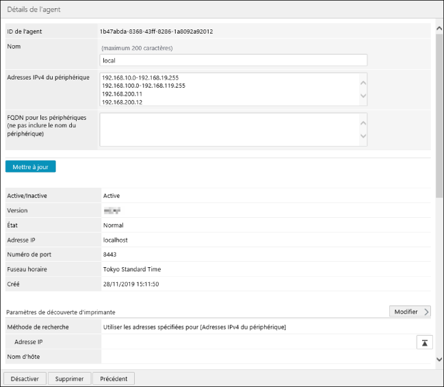 Configurez les périphériques à gérer dans la page [Détails de l'agent].