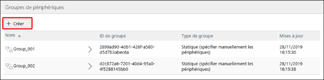 Cliquez sur [Créer] sur la page [Groupes de périphériques].