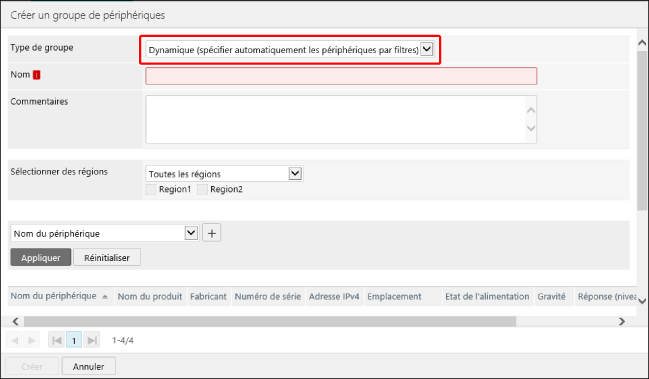 Si [Dynamique (spécifier automatiquement les périphériques par filtres)] est sélectionné pour [Type de groupe]
