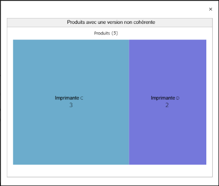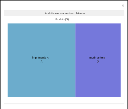 L'imprimante A a une version cohérente et l'imprimante B a également une version cohérente. Ainsi le total de l'imprimante A et de l'imprimante B (cinq périphériques) est affiché en vert.