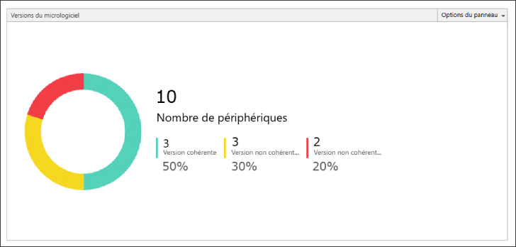Version cohérente | Le nombre de périphériques avec la même version de micrologiciel est affiché en vert. Ce nombre correspond au nombre total de périphériques, quel que soit leur modèle.