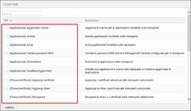 [Disattivo] | Non esegue l'attività. Selezionare questa opzione per rinviare o interrompere un'attività. |