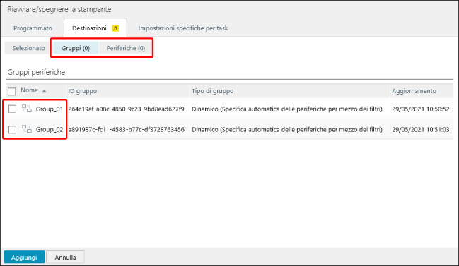 [Data e ora] | Specificare la data e l'ora in cui eseguire l'attività. Il task viene eseguito quando la data e l'ora del computer su cui è in esecuzione il browser web corrispondono alla data e all'ora specificate qui. Selezionare [Usare il fuso orario delle destinazioni] per seguire il fuso orario della regione in cui si trovano le periferiche di destinazione o gli Agent del task. |