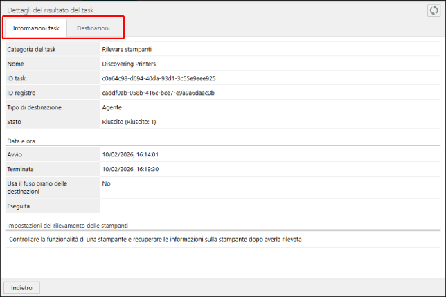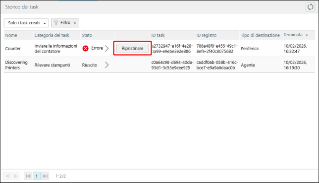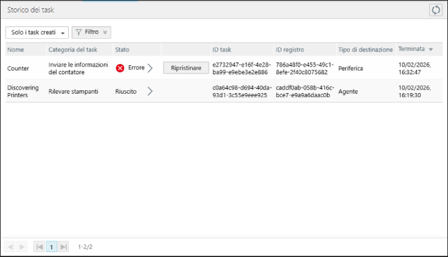 Le periferiche e gli Agent in cui l'esecuzione del task ha avuto esito negativo sono le destinazioni di un task di recupero. |