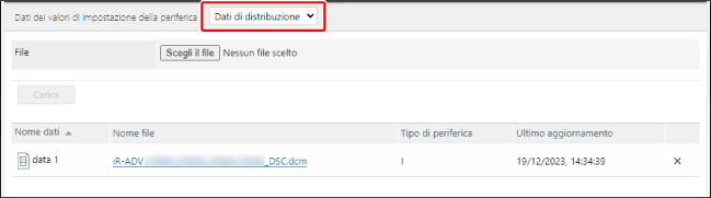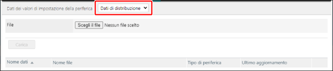 Nell’elenco a discesa nella parte superiore della pagina [Dati dei valori di impostazione della periferica] selezionare [Dati di distribuzione].
