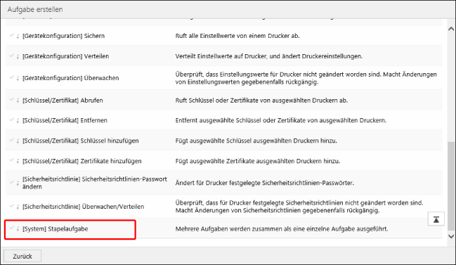 Wählen Sie [[System] Stapelaufgabe] in der Liste auf der Seite [Aufgabe erstellen] aus.